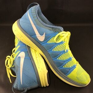 NIKE Mens Flyknit Lunar 2 Sz 10 44 EUR Volt Blue