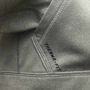 Light Gray Nike ThermaFit Hoodie Sweatshirt in EUC, size M. Drawstring at hood, NIKE graphic at the chest, swoop on left shoulder, kangaroo pocket in the front. 100% polyester. No rips, no stains, pristine condition.