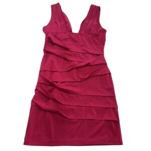NIKIBIKI Dress Womens Medium Pink V Neck Ruched Bodycon Layered Clubwear