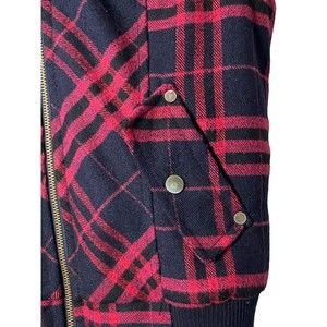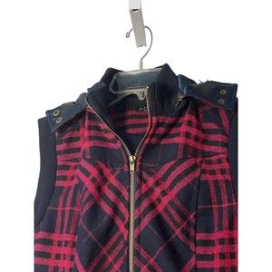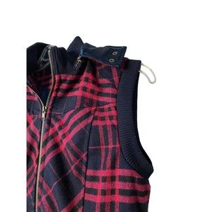 NIKIBIKI plaid zip up hooded black & red vest Sz L