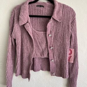 NIKKAK Junior Purple Diamond Button Cardigan with Tank , Size M