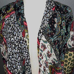 NIKKI ERIN Open Front Flowy Kimono Jacket - Patchwork Multi Color EUC -Size S/M