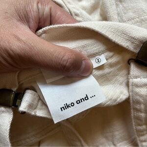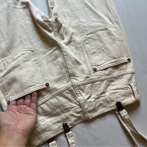 NIKO AND ivory cream denim slim leg cropped overall straps jeans