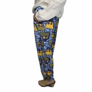 Elastic high waist purse print lounge pants with pockets from Japan. Very comfortable and quirky. Marked a size 3 - fits like a small. Model is a size 6 and 5'3".