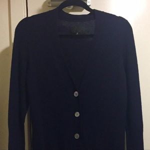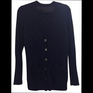 Excellent condition 3/4 length navy Button Nili Lotan Cardigan sweater in 100% Cashmere. In demand designer Nili Lotan makes gorgeous sweaters. Forearms are ribbed for a modern twist. Size medium.