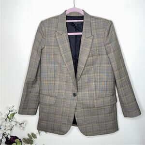 NILI LOTAN Diane Plaid Wool Single Button Blazer Khaki Black {N51}