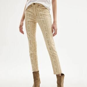 NILI LOTAN Khaki Wallpaper Print Mid Rise Jeans Size 26 New with Tags