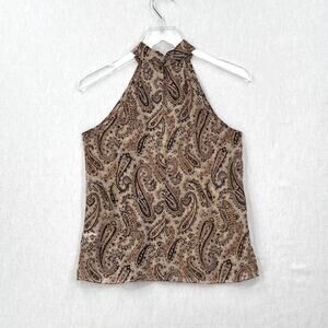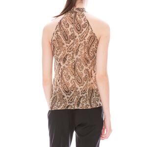 NILI LOTAN Vara Halter Top Womens 4 Tan Brown Paisley Printed Sheer Silk Mock