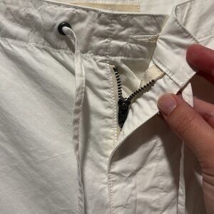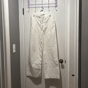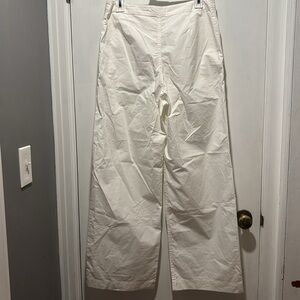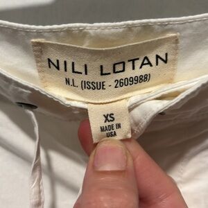 Nili Lotan Kai cotton white wide leg pants. Inside button, zipper fly, and tie waist. Two side pockets. No callouts. Stock photo added for reference. MSRP $400