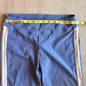 Color light blue / white stripes on the sides. Hooded zipper jacket and pants. Size S. Please see pictures for flat lay measurements. Pre-owned in like-new condition. No original tags.