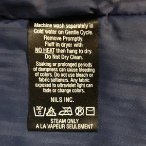 NILS Navy Blue Ski Jacket - Size 6. In excellent condition (like new, no flaws). It is front-zip and front square design buttons, has multiple pockets (inside jacket, front, on sleeves). It is fully lined and insulated and has a removable hood. Very stylish slim fit. You will receive many compliments on the slopes!