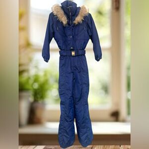 NILS Winter Snow Vintage 80s 90s Fur Trim one piece ski jumpsuit snowsuit Size 6