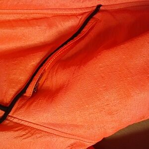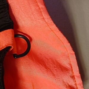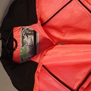 Woman's vintage Bold pink ski/snowboarding jacket with black accents. Size small. Features a stylish belt and unique design. Perfect for a standout look. Has two zippered pockets in the front..one on each breast. Has one inner zippered pocket.