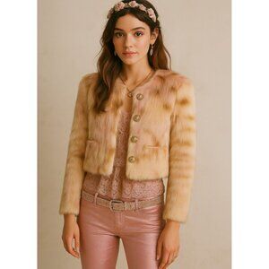 NIMO WANG Faux Fur Jacket Multicolor Pink Brown White Boho Statement Outerwear