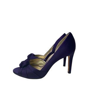 Nina Purple Satin Peep Toe Heels Size 8.5, Knot Detail, open sides, 4" Heel