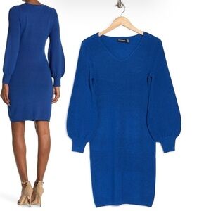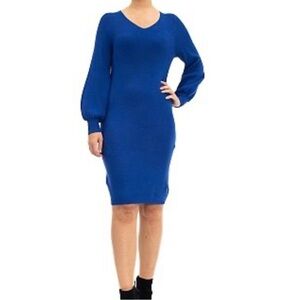 NINA LEONARD V-NECK BALLOON SLEEVE SWEATER DRESS COBALT BLUE NEW WITH TAG LARGE