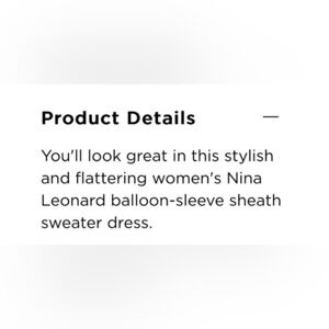 NINA LEONARD V-NECK BALLOON SLEEVE SWEATER DRESS COBALT BLUE NEW WITH TAGS SIZE LARGE, LENGTH 38”