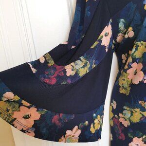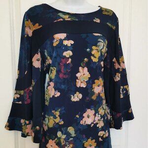 NINA Leonard navy blue floral Jersey top with flare sleeves size L