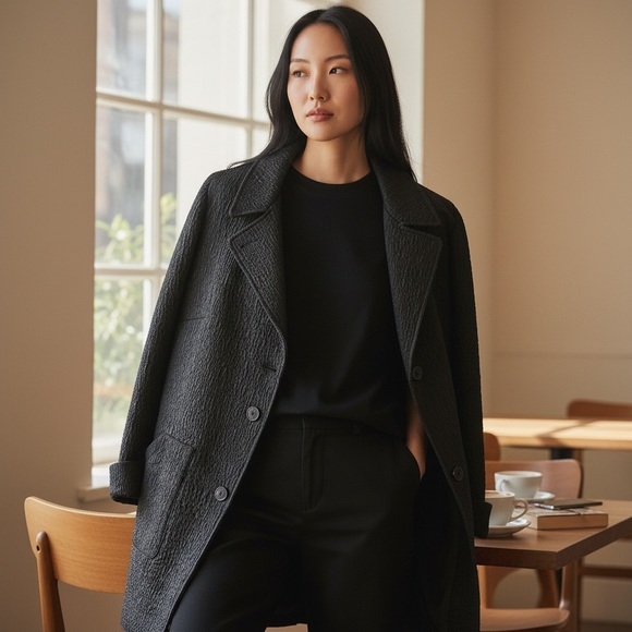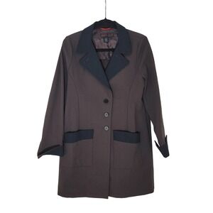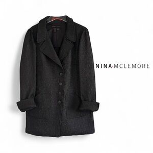 NINA McLEMORE CHARCOAL BLACK TEXTURED LONG BUTTON FRONT JACKET CAR COAT SZ M