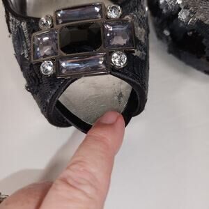 ITEM: NINA NEW YORK Evan Heel Womens 8M Black Silver Sequins Satin Platform Peep Toe