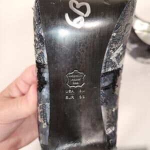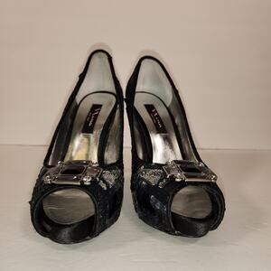 NINA NEW YORK Evan Heel Womens 8M Black Silver Sequins Satin Platform Peep Toe