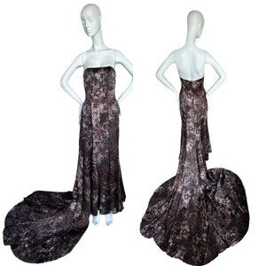 NINA RICCI 2008 Vintage Runway Silk Corseted Evening Gown w. Massive Train