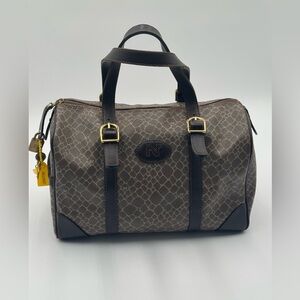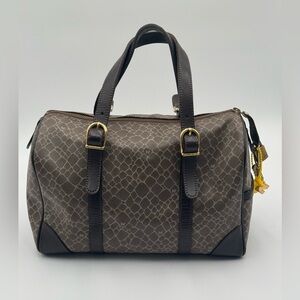 NINA RICCI Brown Coated Canvas Boston Bag, Removable Pouch, Lock n 2 Keys, Charm