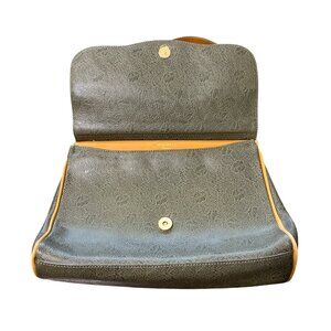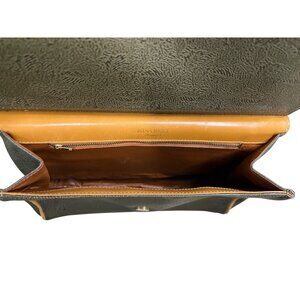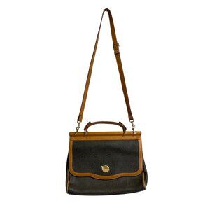 An elegant vintage handbag featuring durable faux leather in brown and green tones. Includes an adjustable strap, gold accents, and a structured silhouette for versatile use.