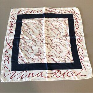 NINA RICCI Silk Ivory Red Navy Border Square Scarf with Logo Writing
