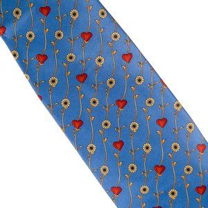 Men's silk tie with floral and heart motif. HANDMADE.