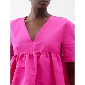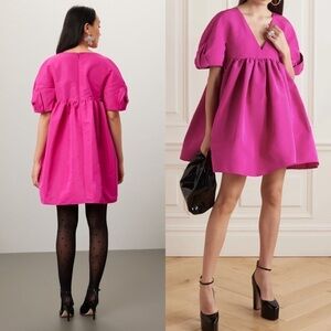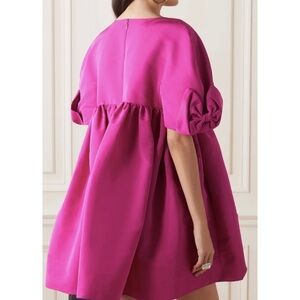 Babydoll silhouettes defined Harris Reed's debut runway for Nina Ricci's AW23 collection and this fuchsia-pink bow-sleeved mini dress is shaped from voluminous taffeta.