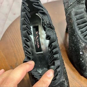 NINA Sequined ruffled ankle bootie Perfect For NyE party! Size 6 black EUC