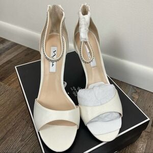 NINA VOLANDA IVORY LUSTER SATIN DRESS SANDALS NWT