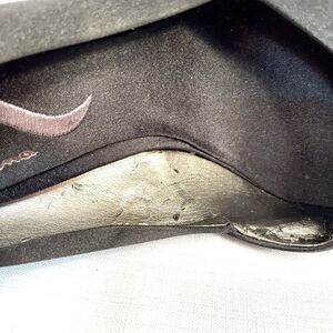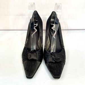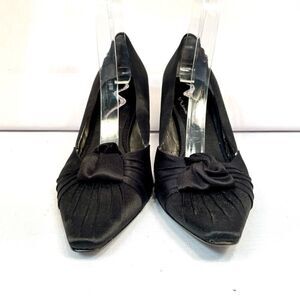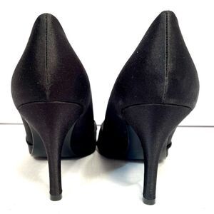 NINA BLACK SATIN 3.5” FORMAL HEELS SIZE 9M Previously Loved See photo for minor inside peeling GUC