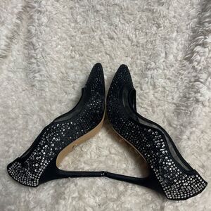 NINA RYOKO FABRIC BLACK CRYSTAL EMBELLISHED SLIP ON HEELS SZ8.5M