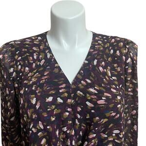 NINE BRITTON FAUX WRAP LONG SLEEVE BLOUSE MEDIUM PETITE PURPLE MULTICOLOR