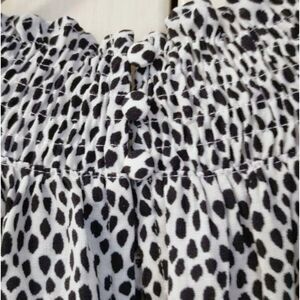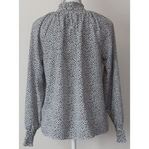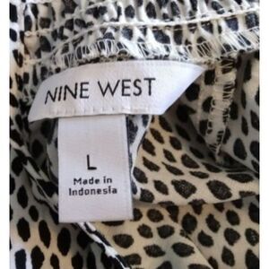 NINE WEST Black & White Print Sz Large Church Office High Neck Long Sleeve Shirt