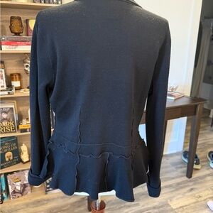 NINE WEST | Black Wool Blazer with Ruffle Accent Medium
