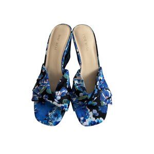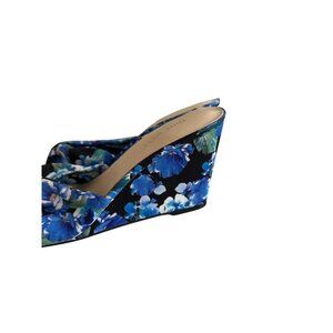 NINE WEST Blue Black Floral Wedges Sandals Size 9 NEW NWOB