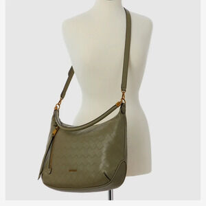 NINE WEST Calla Print Hobo Vegan Leather Bag In Sage olive green
