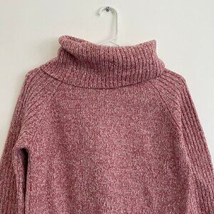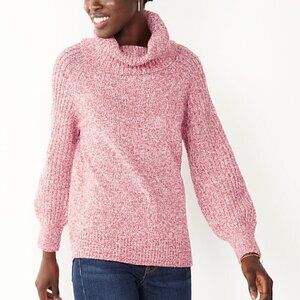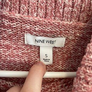NINE WEST Cowlneck Sweater Mauve Pink White Marled Heather Cowl Neck Puff Sleeve