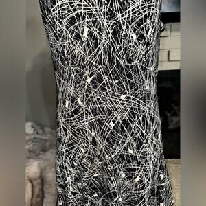NINE WEST Dress Black White Stretchy Flowy Layered Hemline Size Large EUC