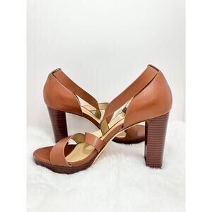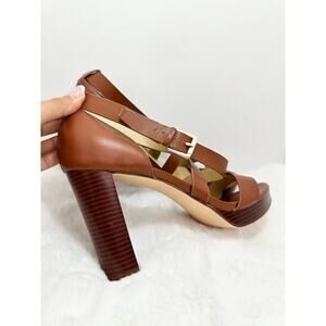 NINE WEST - FREYA, Dark natural GENUINE leather 4.75" platform sandals, SZ 10M