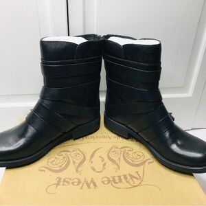 NINE WEST Fargo Black Leather Boots Size 9