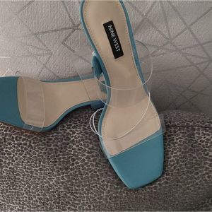 NINE WEST Heeled Slide Sandals transparent straps heels women blue turquoise blue