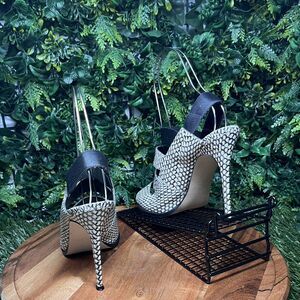 NINE WEST Heels Women 9 Black White Snake Print Open Toe Sling back 2108