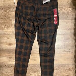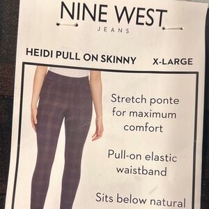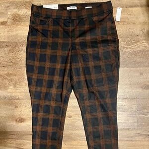 NINE WEST Heidi Pull On Skinny Leggings Copper/Black Plaid SZ XL