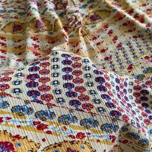 NINE WEST JEANS Boho Floral Tunic Multicolor Roll Tab 1/2 Sleeves Size Small