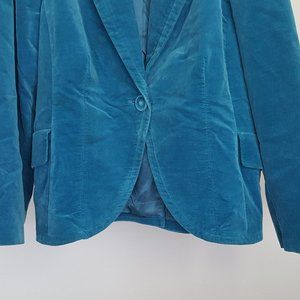 NINE WEST Jacket Sz 18W Aquamarine Velvet One Button Cutaway Style Lined