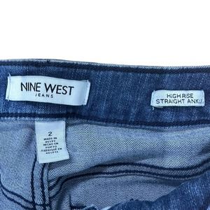 NINE WEST Jeans Women’s sz. 2 Blue Wash High-Rise Straight Ankle Raw Hem. In good pre-owned condition. Perfect for fall transition. Match it with booties or anything you want. Made in Egypt.